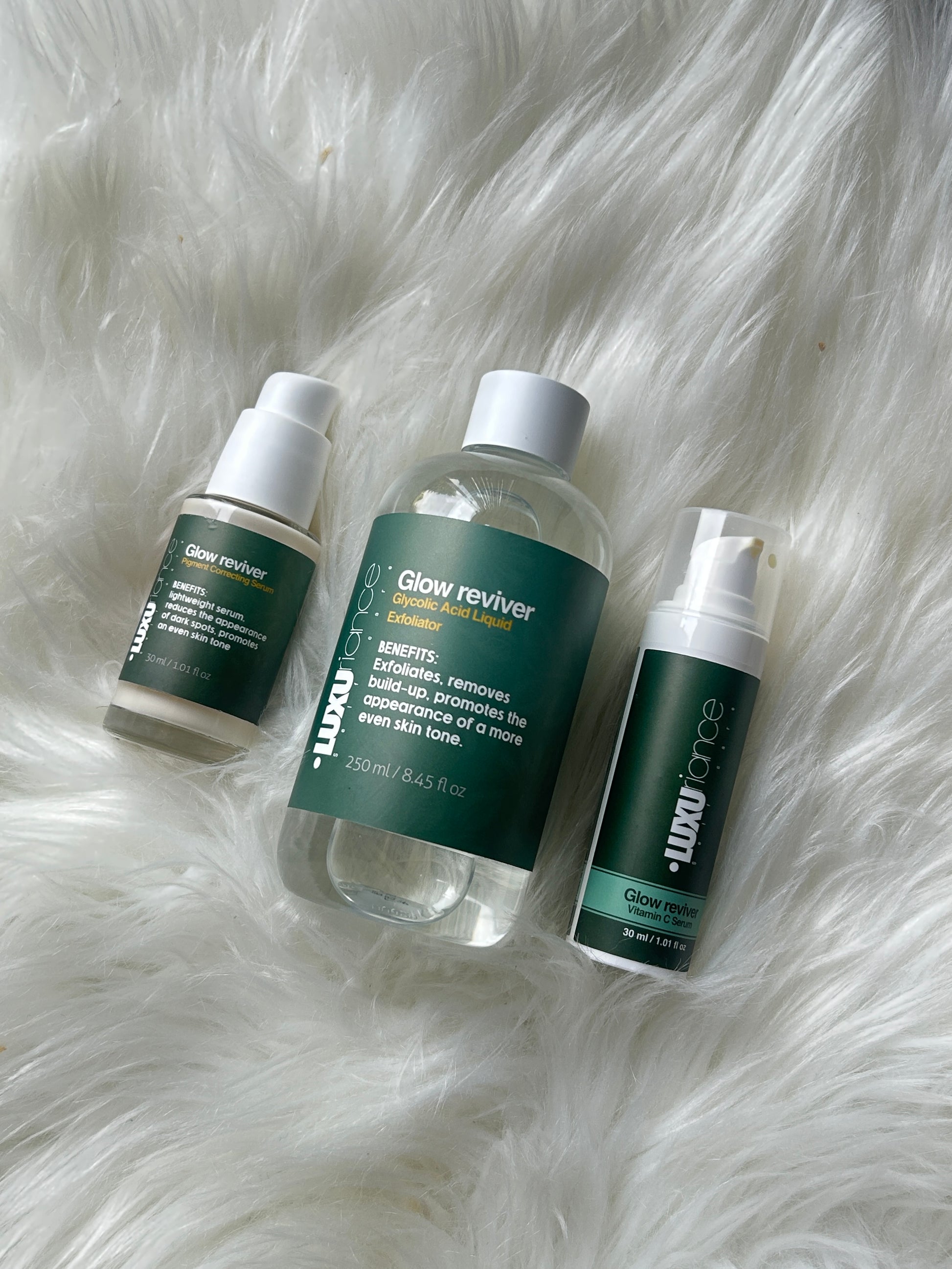 Glycolic Acid Liquid Exfoliator: Unclogs pores, removes dead skin, and speeds up skin renewal for a smoother, brighter surface.
